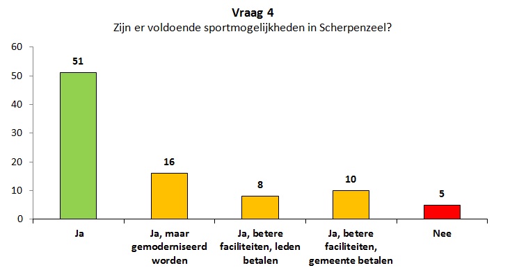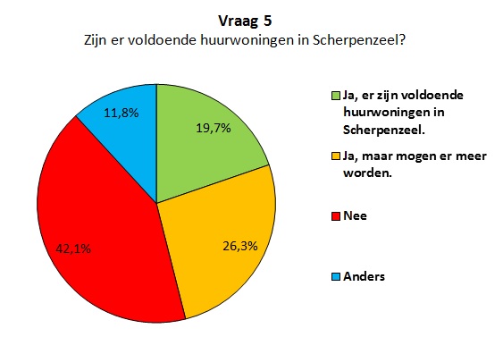 Over sommige zaken zijn inwoners heel duidelijk. Zo vindt ruim twee derde dat we meer toeristen moeten trekken de komende jaren. Daarnaast vindt ruim 42% dat er niet voldoende huurwoningen zijn in Scherpenzeel, vindt 46% dat 6 dagen een blauwe zone niet nodig is en vindt ruim de helft van de inwoners dat er voldoende sportmogelijkheden zijn in Scherpenzeel.