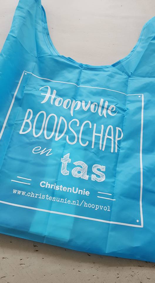 maandag 20 februari 2017 15:53 Nog een aantal weken en dan kunt u weer naar de stembus voor de Tweede Kamerverkiezing. Het zal u daarom waarschijnlijk niet ontgaan zijn, dat in Nederland de Campagnetijd weer is aangebroken. In Scherpenzeel zijn ondertussen een aantal posters opgehangen en de ChristenUnie Scherpenzeel is, als eerste partij, afgelopen zaterdag met de fractie en het bestuur het dorp ingegaan om de inwoners te vertellen over de 'Hoopvolle' boodschap die de ChristenUnie voor u heeft. De 'Hoopvolle' boodschap willen we ook de inwoners van Scherpenzeel uit laten dragen en daarom zijn er milieuvriendelijke boodschappentassen uitgedeeld met daarop de tekst: 'Hoopvolle Boodschap en Tas'